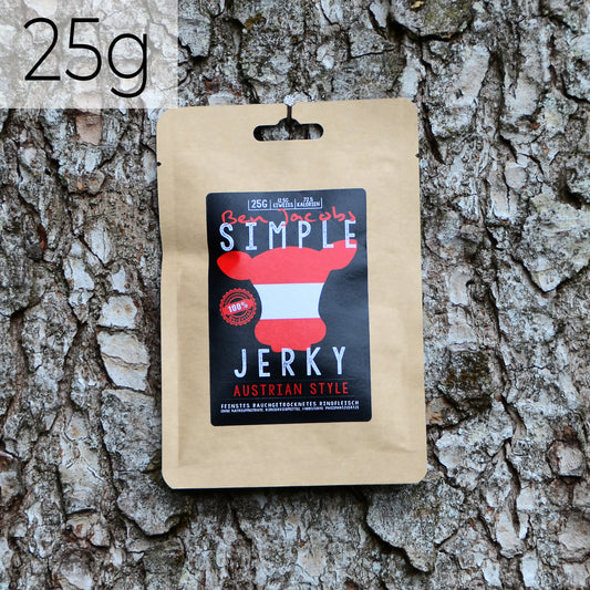 Voor onze Simple Jerky gebruiken we uitsluitend Oostenrijks weiderund. Onze leverancier van rauw vlees garandeert diervriendelijke houderij, korte transportafstanden en een ononderbroken herkomstbewijs.